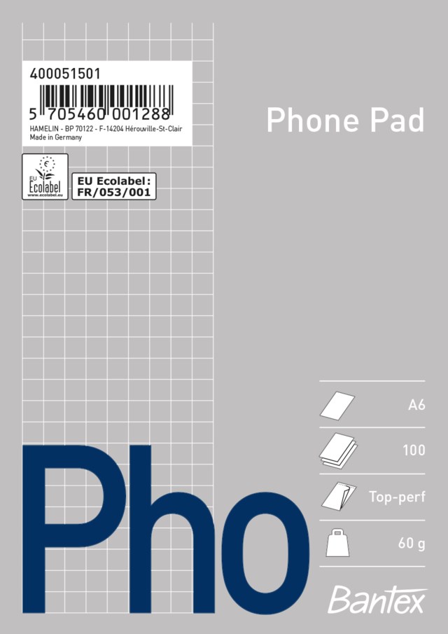 Klammerblock Bantex A6 rutat erbjuder 100 blad av högkvalitativt 60 g TCF-papper. Den rutade designen med perforering ger enkelhet vid avlägsnande av enskilda blad. Formatet är praktiskt för både portabilitet och smidig förvaring.