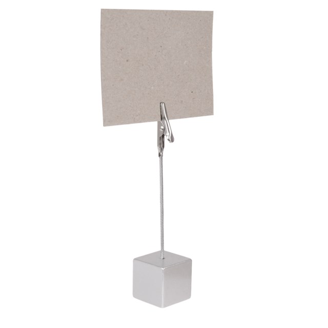 Prisklämman med krokodilklämma och stabil fot är perfekt för att visa priser eller information i butiker. Med en höjd på 11,5 cm och en bas som mäter 2,5 cm per sida, erbjuder den en kompakt och funktionell lösning för alla dina skyltbehov. Den eleganta silverfinishen ger en sofistikerad touch till varje uppställning.
